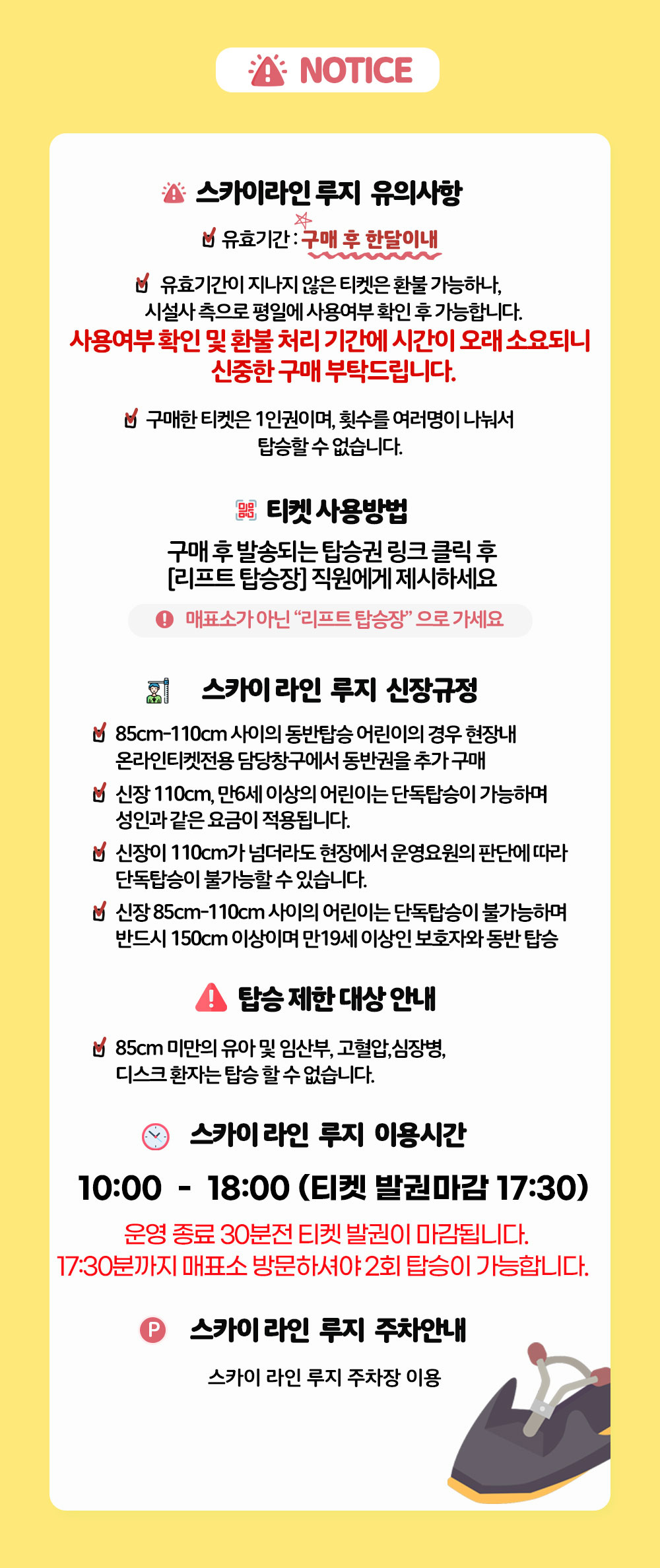 - 유효기간이 지나지 않은 티켓은 환불 가능하나, 시설사 측으로 평일에 사용여부 확인 후 가능합니다.